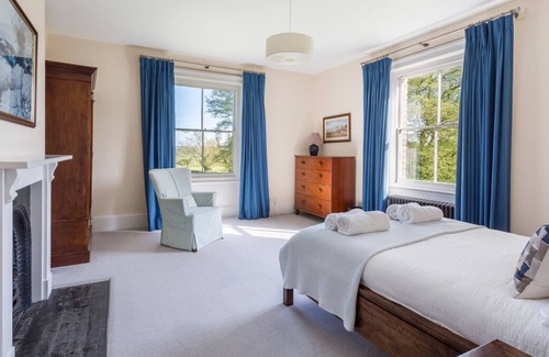 The characterful home can comfortably accommodate up to ten guests across five beautifully kept bedrooms. On the ground floor is the elegant entertaining space which comprises of an inviting living room with cosy open fireplace, a spacious dining room and a fully-equipped kitchen which comes complete with all the tools a budding chef could possibly need! Upstairs on the first floor are the bedrooms, a master room which boasts its very own en-suite bathroom, as well as a further two doubles and two twin rooms, each of these boast fireplaces and countryside views. One of the doubles and one of the twins share the use of a newly-installed shower room, while the remaining rooms share a large family bathroom.