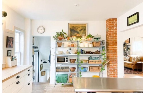 We purchased this 1890's brick home as a real fixer upper! We have 99% of the house complete from top to bottom, and you will see it is impeccably designed with beauty and function in mind. We love our industrial style kitchen, the layout, appliances and materials make this a great place to prepare any meal. The stairs and upstairs landing haven't gotten their facelift yet. But the spaces function and are decorated to feel more like the rest of the home.