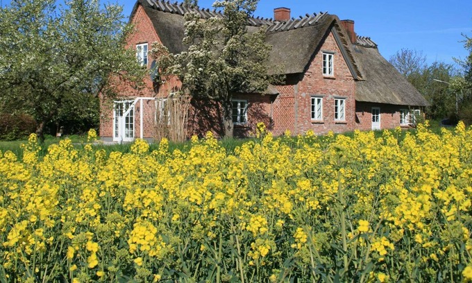 The holiday home "Altes Schusterhus" is a historic thatched cottage in the classic North German style. Built in 1870, the house was completely restored in 2015 and stylishly furnished with great attention to detail. The light-flooded spacious living and dining area with light oak floorboards guarantees a comfortable stay whatever the weather. On the ground floor, in addition to the living and dining area with direct access to the terrace and garden, two double bedrooms, a spacious hallway, the kitchen and a large bathroom with shower and bath. The upper floor is divided into a children's room with sleeping for up to five children, an open studio area and another toilet. Special features A special highlight of this property is the over 2000 m² garden with old fruit trees, which is immediately adjacent to a large field with a panoramic view of the landscape. Due to the secluded location you can enjoy your holiday undisturbed. Additional costs; Electricity according to consumption (0.35 kWh), heat according to consumption (0.08 Euro / kWh) will be charged on the spot! Deposit 200, -Euro, bed linen 3.00 Euro per person, towels 3.00 Euro per person. or linen package 6,00 Euro per person