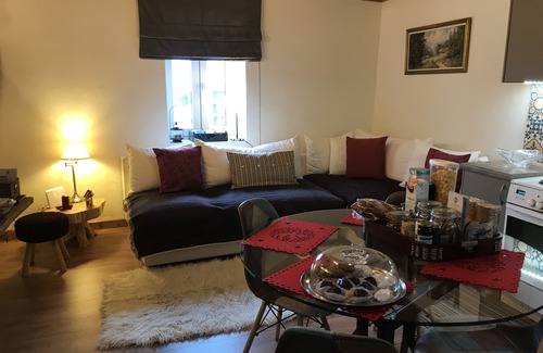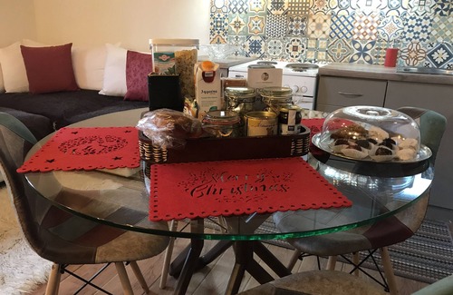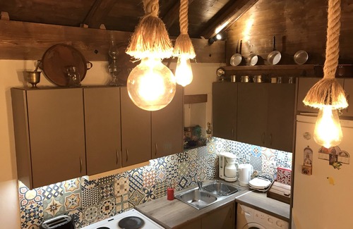 A renovated stone house in the traditional part of Karpenisi city consisting of a lounge ,a kitchen ,a bathroom and two bedrooms.