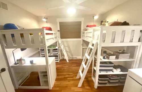 While staying here, your kids will not be bored. They will have endless options of activities including taking a turn on the tree swing, jumping on the trampoline, shooting hoops in the driveway, playing ping pong, or kicking the ball around the soccer fields next door. You’re welcome to use the assortment of adult and kids bikes to explore the local trail system or take a 5-minute bike ride downtown to visit our kids’ favorite candy shop, Assorted Goods, grab some Hawaii shave ice from Punch Buggy, or a scoop of handcrafted ice cream from Sweet Cow.
