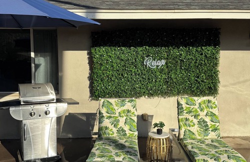 Fully fenced in. Lounge chairs for sunbathing. Gazebo with sectional outdoor sofa and bistro lights. BBQ gas grill