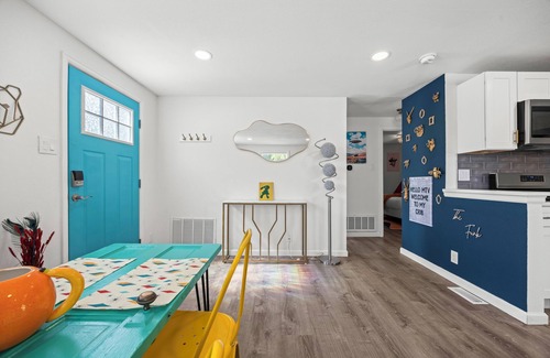 Welcome to The Funk! This wild and wonderfully weird 3BR, 2BA home is bursting with personality. Kick back in the vibrant living room, cook it up in the roomy kitchen, or binge your faves on one of FIVE TVs. The backyard is the real star—hot tub, BBQ, yard games, and hangout vibes all day long. Stroll to Olde Town’s buzzing cafés, breweries, and shops, or hop on the light rail for a quick, easy ride straight into Denver!