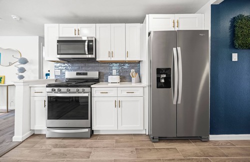 Kick back under the stars in the hot tub or challenge your crew to a lively game of cornhole. The backyard is packed with fun, featuring lawn darts, a giant Connect Four, and plenty of space for friendly competition. Fire up the BBQ grill and enjoy a delicious meal, then cap off the evening with s’mores around the firepit. Enjoy peace of mind in the fully fenced yard, designed for privacy, safety, and carefree relaxation for all.