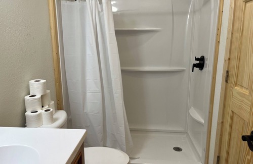 We currently have two king size beds and two triple bunk beds with full size mattresses! It's 4 bedroom and 2 baths! You will have access to the whole cabin as well as plenty of parking for vehicles and trailers with your boats, ATV s and snowmobiles! There is also an outdoor campfire area! Bring your weinies and S'mores!