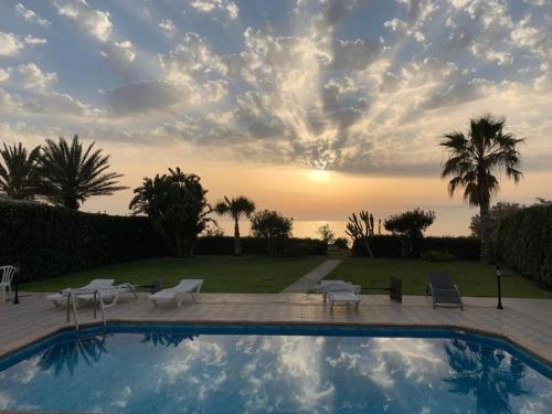 Featuring a garden, Olgas Villa provides accommodations in Ayia Marina. This beachfront property offers access to a balcony, free private parking, and free Wifi. The mountain views are a highlight at the vacation home's pool. Providing a terrace and sea views, the spacious vacation home includes 3 bedrooms, a living room, satellite flat-screen TV, an equipped kitchen, and 3 bathrooms with a bath and a shower. A private entrance leads guests into the vacation home, where they can enjoy some wine or champagne and fruit. The property has an outdoor dining area. During warmer months, you can make use of the barbecue facilities and eat on the private patio. A car rental service is available at the vacation home. Agia Marina Chrysochous Beach is a few steps from Olgas Villa, while Minthis Hill Golf Club is 27 miles away. Paphos International Airport is 35 miles from the property.