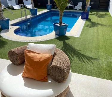 Featuring a garden, Olivia Holidayhouse Maspalomas provides accommodations in Maspalomas. Both free Wifi and parking on-site are accessible at the villa free of charge. The villa features an outdoor swimming pool with a pool bar, as well as a solarium and free shuttle service. The air-conditioned villa consists of 3 separate bedrooms, 3 bathrooms with bathrobes, a seating area, and a living room. Guests can take in the views of the pool from the terrace, which also has outdoor furniture. For added privacy, the accommodation has a private entrance and soundproofing. Both a bicycle rental service and a car rental service are available at Olivia Holidayhouse Maspalomas, while cycling can be enjoyed nearby. Meloneras Beach is 1.5 miles from the accommodation, while Yumbo Centrum is 2.5 miles away. Gran Canaria Airport is 19 miles from the property, and the property offers a paid airport shuttle service.
