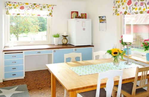"Olleredsbro", 5-room house 105 m2 on 2 levels. Simple furnishings: living room with satellite TV and radio. 1 double bedroom with 1 double bed. 1 room with 1 x 2 bunk beds. Kitchen (4 hot plates, oven, dishwasher, toaster, kettle, microwave, freezer, electric coffee machine) with Scandinavian wood stove (only for decoration), dining table. Shower/WC. Upper floor: 1 room with 2 beds. Wood heating. Facilities: washing machine, children's high chair, baby cot. Please note: non-smoking house.