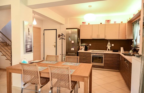 This modern luxurious 100sq m villa serves for ideal family, couple or/and friends holidays all year round. Only 180m from a beautiful sandy beach and very close to Mountain Olympus.