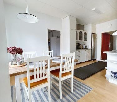 Offering a garden, Omakotitalo lähellä keskustaa offers accommodations in Kokkola. This apartment provides free private parking, luggage storage space, and free Wifi. Providing a terrace and garden views, the spacious apartment includes 4 bedrooms, a living room, flat-screen TV, an equipped kitchen, and 1 bathroom with a bidet and a shower. Towels and bed linen are featured in the apartment. The property has an outdoor dining area. There is an on-site coffee shop. Kokkola-Pietarsaari Airport is 8.7 miles away.