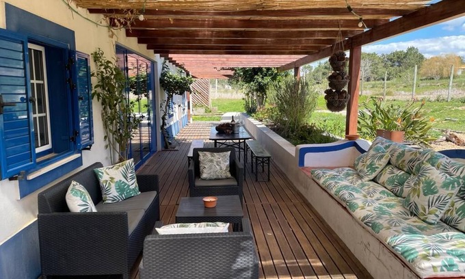 Enjoy a peaceful stay and beautiful sunsets over the Atlantic Ocean at this well furnished and comfortable farmhouse in Vale Figueira, Melides, just 12 minutes from the fabulous beaches in the area, and five minutes from the town of Melides.