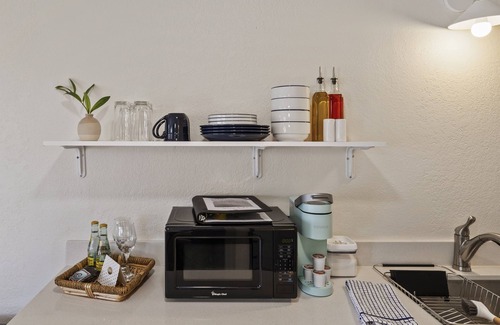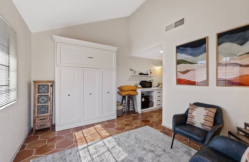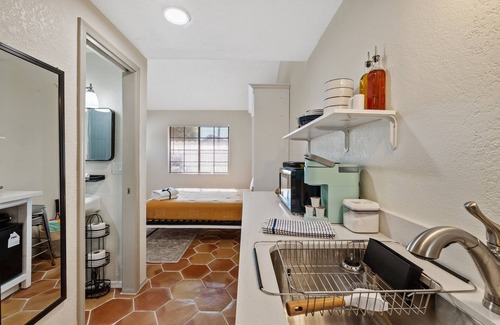 Enjoy your cozy studio suite! This 250 sq ft studio casita was designed to make you feel at home. It's nestled in a lovely neighborhood with an artificial lake, community pool, hot tub, & basketball and tennis courts! The home is located just 4 minutes from the downtown Chandler scene, close to the 202 freeway, and surrounded by dining and entertainment. We decorated and furnished the casita for your maximum comfort and enjoyment. To save space, we have installed a murphy bed that folds up against the wall when not in use. The studio is equipped with a kitchenette that includes a countertop cooker, mini fridge, microwave, and Keurig. You also have a large shower, 1GB Wi-Fi, and a flat-screen TV with free access to Netflix, Disney+, and local channels. This casita is attached to the garage of the main house on the property, but it does not share any walls with the main house and has a separate entrance. The only shared space on the property is a patio on the west side of the house and the driveway. We trust you'll love your stay and hope that you truly feel at home. Mi casa es su casa!