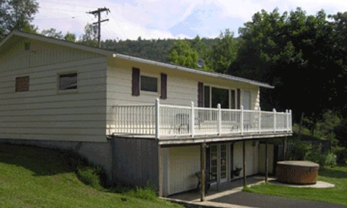 This lovely ranch house is surrounded by lawn for children's games, a hot tub at the back of house for relaxation. Access to Goodyear Lake is across a small street and down a few steps to two private docks for the Sunnycrest houses. There are complimentary canoes, paddle boat, water trampoline and life jackets so you can fully enjoy the lake.