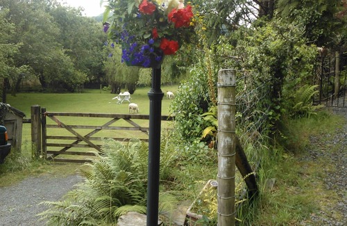 3 bedroom with off road parking for 2 cars ,sleep up to 5 adults or family of 6. One family room with double and single bed, and one twin room on the top floor, and a very small single room{full size bed} which is on the lower floor. The lounge/kitchen-dinner are split level and open plan. Bathroom with shower over bath on the top floor and 2nd wc on lower floor. Play barn with table tennis, pool table and table football and can be used to store bikes etc .We do allow a dog but there is a charge , we do have dogs, a cat and sheep, so should be under control at all times and never left in house or garden alone. Garden has stock fencing ,seating and B Q for your use. We are only 6 miles from sea side town of Barmouth, and just 3 miles from Market town of Dolgellau.
