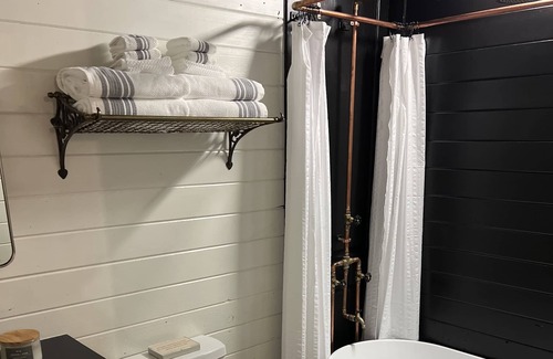 THE LAKE LOT has just opened its newly completed “STABLES” rental. Lake living at its finest. Modern meets rustic in this charming stable apartment. You will fall in love with the juxtaposition design. From the crystal chandeliers to the cowhide rugs adoring the living room where you can raise the glass garage style doors and can enjoy the beautiful view of the woods. Kitchenette offers Breeville convection oven, microwave, coffee pot and beverage fridge. Grill Master enthusiasts will have access to Blackstone Griddle and Gas Grill. Move outdoors to enjoy a fire pit and fun to be had on the covered party patio with swings, ping pong, corn hole boards and dart boards. Finally of course private access to Lake Nocona with your own boat ramp and beach area to swim, park and play.