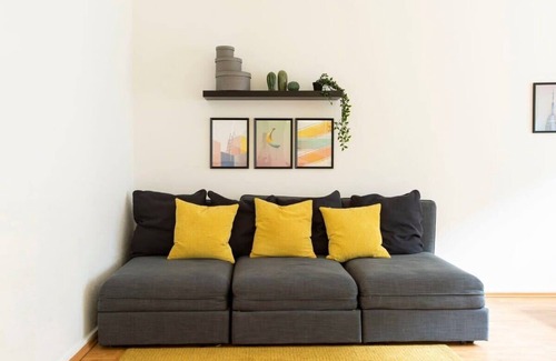 The former commercial unit is centrally located in Berlins most upcoming district Neukölln and was turned into a 1 bedroom apartment with direct street access. Located on the ground floor and on approx. 45 m² there is space for up to 9 people. The bright living room offers a large dining area, comfortable sofa elements that can be converted into single beds and flat screen TV with Amazon FireTV Stick and ZattooLive TV function. There is a sleeping area with 2 double beds that is visually separated from the living area. Another bedroom features a double bed. The separate kitchen is fully equipped with dishwasher, stove and oven, fridge with freezer, coffee maker, kettle, toaster. The bathroom offers a shower/WC. Explore Berlin like a local and benefit from the size of the apartment and good connections to the city center.
