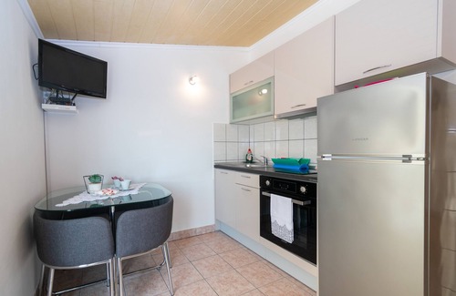 Apartment can accommodate 4 guests. Beds are situated in 1 sleeping rooms, but also in the dining room, within 29m2. Guests can use a private terrace to enjoy the warm summer evenings. The apartment offers the sea view. Food can be prepared using barbecue which is shared with other guests too. This accommodation unit welcomes pets at an additional charge.