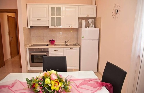 Apartment can accommodate 4 guests. Beds are situated in 1 sleeping rooms, but also in the dining room, within 42m2. Guests can use a private terrace to enjoy the warm summer evenings. The apartment offers the sea view. Food can be prepared using barbecue which is shared with other guests too. For the booked accommodation unit the deposit is paid directly to the owner upon check-in (deposit amount is displayed on the website)