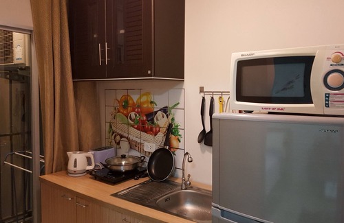 Unit size: 30 sqm. Fully furnished. Good size kitchen with electric stove,microwave, refrigerator. Water supply and electricity included. There are many shops, restaurant as well as local market within your walking distance.The development is built in a very high quality, gated with key card access, 24 hours security,gym fitness available with no additional charge.This place would definitely suite for your vacation and could be called as a second home for you.