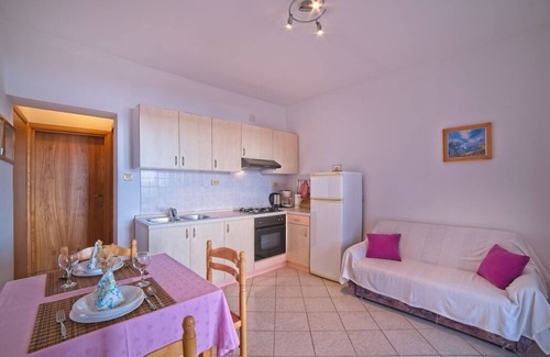 Apartment can accommodate 4 guests. Beds are situated in 1 sleeping rooms, but also in the living room, within 30m2. Guests can use a private balcony to enjoy the warm summer evenings. The apartment offers the sea view. Food can be prepared using barbecue which is shared with other guests too. This accommodation unit welcomes pets at an additional charge.