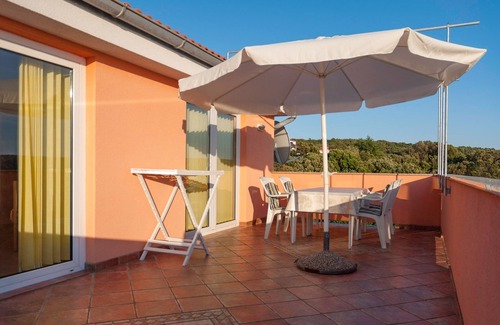 Apartment can accommodate 4 guests. Beds are situated in 1 sleeping rooms, but also in the living room, within 39m2. Guests can use a private terrace to enjoy the warm summer evenings. The apartment offers the sea view. Food can be prepared using barbecue which is shared with other guests too. This accommodation unit welcomes pets at an additional charge.