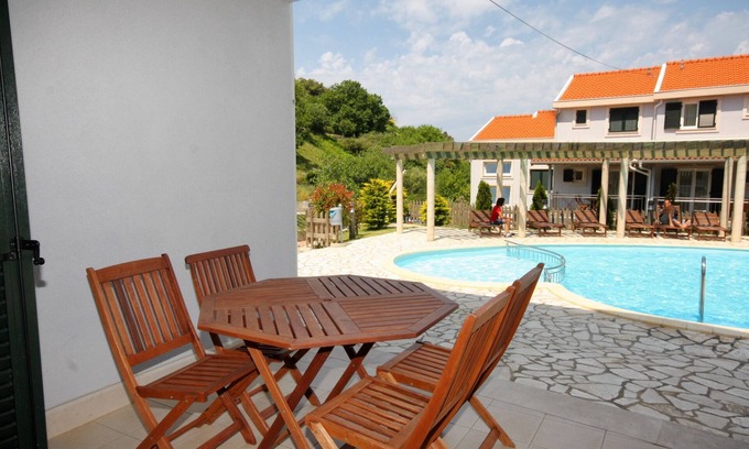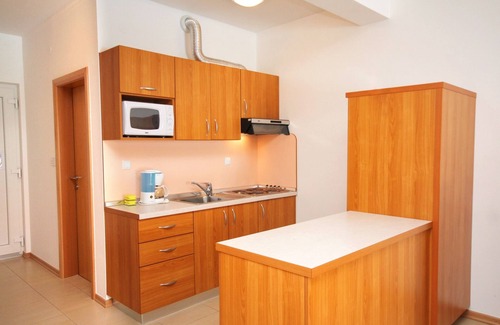 Apartment can accommodate 4 guests. Beds are situated in 1 sleeping rooms, but also in the living room, within 46m2. Guests can use a private terrace to enjoy the warm summer evenings. Food can be prepared using barbecue which is shared with other guests too. Shared pool is on disposal during stay. For the booked accommodation unit the deposit is paid directly to the owner upon check-in (deposit amount is displayed on the website)
