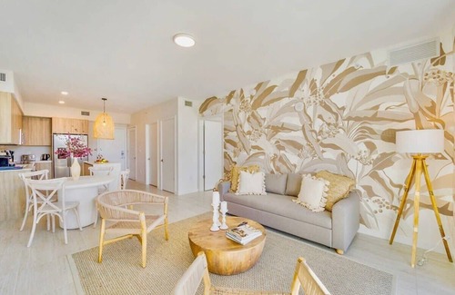 Entire luxury condo at Quadro in the Design District. Fully equipped - Free parking, coffee, Wi-Fi & cable. The building features amenities in the 6th floor including a fitness center, a lounge with co-working area & a game room, an outdoor dining area with BBQ's and a great pool.Enjoy guest exclusive neighborhood discounts. Walk to hundreds of designer shops, restaurants, bars, art galleries, & more! 10-min drive to Miami’s international airport, 15-min drive to Miami Beach.