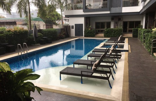 One fully furnished luxury bedroom with king size bed,55 inch flat screen Smart TV with cable in each room, very fast internet, full kitchen including all cooking utensils, refrigerator with automatic ice maker, four burner electric top, reverse osmosis water purification, washer and dryer, private balcony with city view, swimming pool with jacuzzi, parking space and 24hrs security, 10min walk to Sm mall and fields ave, golf course next door, 24hrs convenient store on the corner and plenty of good restaurants in the neighborhood.