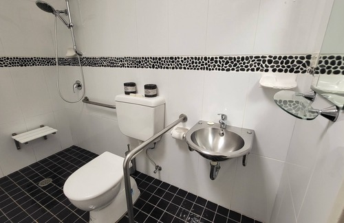Experience comfort and accessibility in our One Bedroom Disability Access Spa suite. Located on the ground floor, this suite features a luxurious spa bath ideal for two, a separate bedroom with a King Split Bed, and a fully equipped kitchen with hot plates and a microwave. Enjoy meals at the kitchen table and relax in the spacious sofa lounge. The suite also includes a convenient shower, making it a perfect blend of luxury and accessibility for a memorable stay.