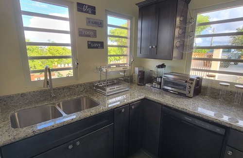 Newly built, NO SMOKING INSIDE quiet neighborhood, owner lives next door, Air-condition bedroom, spacious living areas, king size bed, comfortable portable bed for additional guest, linens provided, Keurig Coffee machine, housekeeping once week if staying 5 days or more shower gel, shampoo, conditioners provided, wireless printer scanner ,copier, with individual work space TV with numerous channels board games wireless internet. BBQ grill fully stocked kitchen beach umbrellas beach towels washer and dryer safe in bedroom sofa chair in bedroom outdoor dining option concierge services available