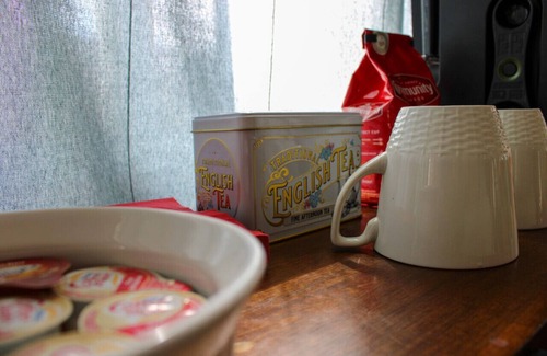 Take a walk through the common room and tada! You’ve found your dormitory. With windows on 3 sides, you get plenty of light. However, you can close all of the curtains if less light is more your thing. There is also a plant filled coffee bar in the bedroom for you to enjoy as soon as you wake up 🙌🏽