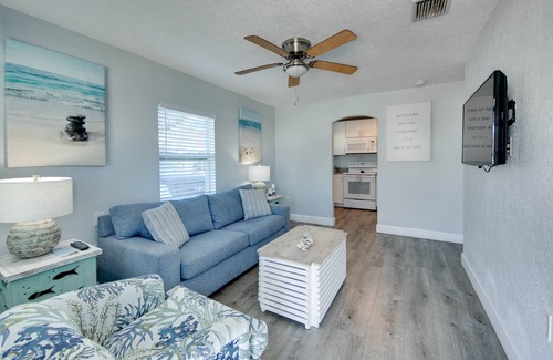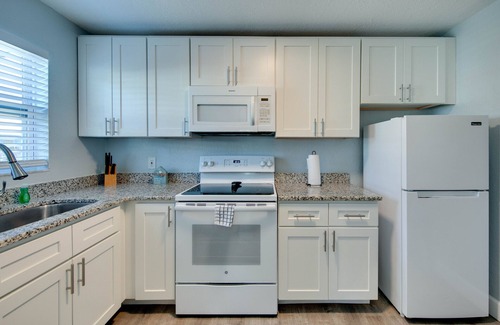 Ideal location! Our guests enjoy the large heated pool area with plenty of chaise lounges and seating. Steps from beautiful Treasure Islands Sunshine Beach and walking distance to Famous John’s Pass Village with great restaurants and shopping. The Bungalows and Silver Sands resort offers our guests a modern coastal Key West design wrapped in a family friendly quiet environment. Old Florida charm combined with modern updates makes for the perfect getaway. Surrounded by lush gardens, our resort offers you a choice of updated studios to one and two bedroom suites. All units have been updated with new bathrooms and full kitchens. Everything you need to whip up a meal or create a memorable picnic for the beach.