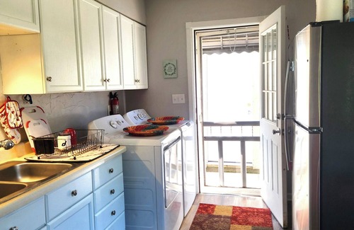 KITCHEN: In addition to the above, we have toaster, electric can opener, full size fridge, stove & oven, microwave, dish soap, washer detergent and dryer sheets, spices and condiments. Complimentary water bottles, coffee, tea and creamers.