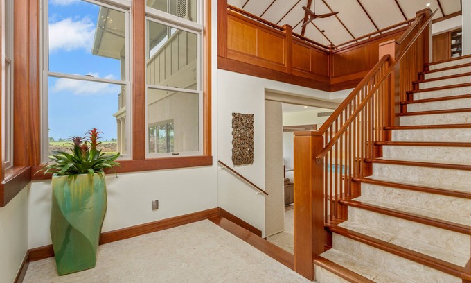 This 3 bedroom/3 bathroom multi-level layout incorporates the finest materials and design ensuring guests the comfort and serenity they seek while at Hualalai. The Ke Alaula Villas are a "Phase II" project at Hualalai meaning the best of Phase I combined with a number of upgrades including rich mahogany trim throughout, built-in lanai barbecue, lush, tropical landscaping and more.