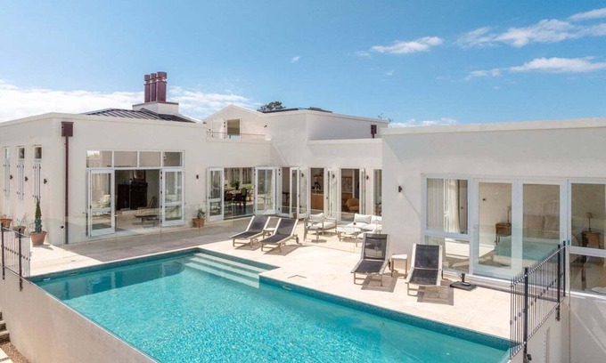 Commanding the hilltop above Onetangi, this Italian-inspired palazzo is a sanctuary of elegance, exclusivity, and breathtaking views. Designed for those who seek only the finest, the estate offers an atmosphere of refined indulgence that feels worlds away yet is just moments from Waiheke’s pristine beaches and vineyards. Step into soaring interiors where sunlight pours through antique shutter clad windows, framing the endless horizon of sparkling sea and sky. From dawn’s first glow to the golden sweep of sunset, the panoramic vistas are yours alone. Outside, cascading terraces lead to a heated infinity pool, with far reaching vistas. The main residence embodies understated grandeur—Travertine floors, bespoke furnishings, and generous living spaces that invite both relaxation and celebration. Three of the 4 bedrooms have Queen beds, and the fourth bedroom has twin singles. A private guest cottage, equally refined, allows friends or staff to share in the experience while maintaining discretion and privacy. The cottage can sleep an extra 4 guests with a Queen bed in the main living space, and two singles in the bedroom. (Please note that the cottage is listed separately, ensure to book the Estate including cottage if you require both). Whether savouring a vintage under the umbrella, reclining by the pool, or wandering through the manicured olive grove, every moment here is crafted for luxury. This is not simply accommodation; it is an estate for connoisseurs. Onetangi Estate—where life on Waiheke ascends to the extraordinary.