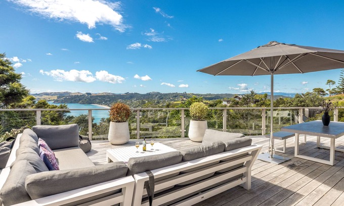 Enjoy a BBQ on the deck graced with breathtaking views of Onetangi Beach, Pie Melon Bay, native bush and the surrounding countryside. This is the ultimate in elegant yet laidback Waiheke Island accommodation.