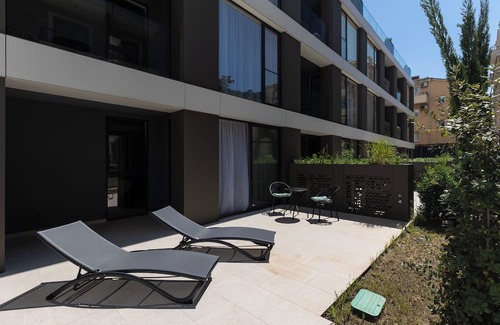 Spacious studio with private terrace in a premium condo with a swimming pool.