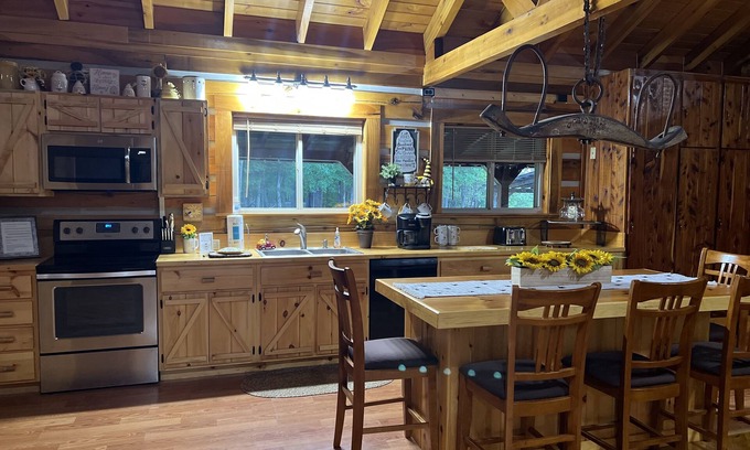 Silver Mine at The Lake is a spacious, open concept four bedroom rental unit. It is located next to the famous Tight Hollow old growth forest. We have a catch and release lake on the property for you to enjoy. Stocked with catfish and many other types of fish. Fishing is at own risk and life vest ( provided) are required as we do not have a lifeguard on duty. This is a lodge setting but privacy is not an issue as there are only two rentals in the building and they are located on opposite ends of the building.
