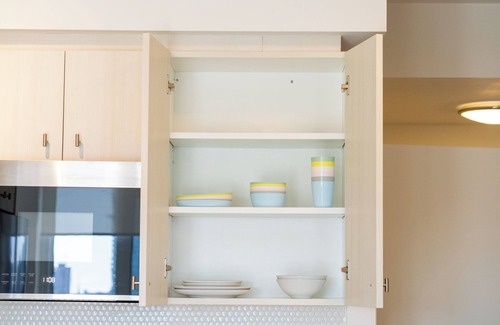 The kitchen area is fully equipped with a range of culinary essentials, ensuring you have everything you need for your culinary adventures. Should you prefer to dine in, this is your culinary sanctuary.