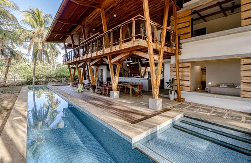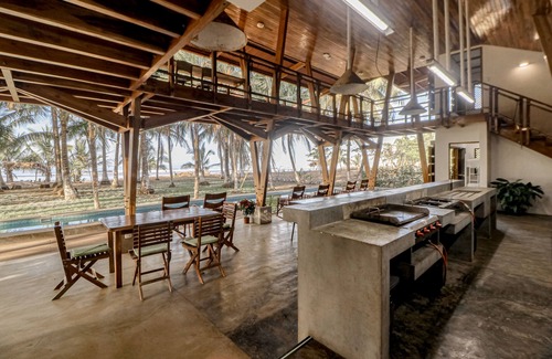 Make your way to paradise at this beautiful and peaceful, oceanfront home located just steps from Playa San Miguel. With a unique, open air design, this four-bedroom, family-friendly retreat is sure to please guests of all ages. At the heart of the structure, you'll find a kitchen area with propane-fueled griddle and two-burner cooktop as well as a side room with a full-size refrigerator, microwave, toaster oven, and loads of utensils and other accessories for easy at-home meal prep. You'll also find multiple tables and chairs for mealtimes or socializing, while the private pool and adjacent spa await right outside. For sleeping options, this home offers four private bedrooms on both floors including a kid-friendly bunk room off the kitchen area. Additional amenities include a foosball table, complimentary internet access, and a washer/dryer.