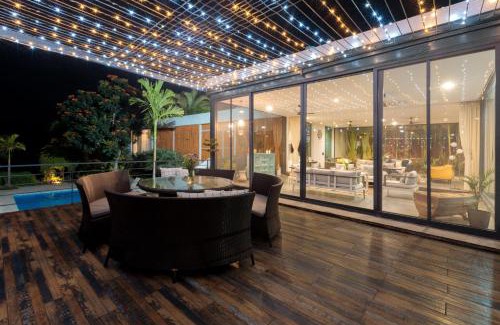 Providing a terrace, Open House by StayVista - Nestled in nature, featuring a Swimming pool & Expansive lawn for a serene retreat features accommodations in Shikrapur. This property offers a private pool, free Wifi, and free private parking. On clear days, guests can head outside to enjoy the villa's outdoor fireplace. Featuring a balcony and pool views, the spacious villa includes 3 bedrooms, a living room, flat-screen TV, an equipped kitchen, and 4 bathrooms with a walk-in shower. Guests can take in the views of the garden from the patio, which also has outdoor furniture. For added privacy, the accommodation features a private entrance. An indoor play area is also available at the villa, while guests can also relax in the garden. Aga Khan Palace is 23 miles from Open House by StayVista - Nestled in nature, featuring a Swimming pool & Expansive lawn for a serene retreat, while Bund Garden is 25 miles from the property. Pune International Airport is 23 miles away.
