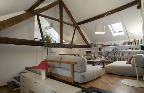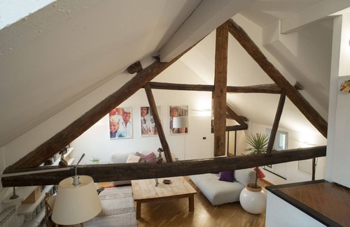 Composed by two double rooms and two bathrooms, one with shower, a big living room and open kitchen. To reach the house you have to walk up a little and then make two storey stairs without elevator, not recommended. The neighborhood is characteristic and consists of small brick streets and a beautiful square where is located the ancient Carmine market, just renovated, in which you can dine. In the square also two nice bars and a great bakery where to buy "focaccia" a typical Genoese bread.