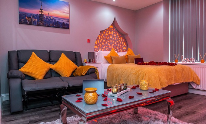 All our luxury serviced apartment suites are extremely spacious, well lit and furnished to a very high standard with brand new contemporary furniture. All the suits boast a luxurious bathroom that comprises of a Jet spa bath tub, smart TV and monsoon waterfall showers complimented by LED mood lighting. The lounges consists of natural stone feature walls, log burning fire and large Samsung smart TVs; perfect for those quiet nights in.