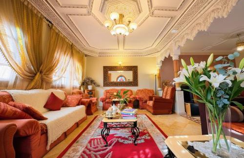 Oranger Family House Marrakech City Center, Private Large House, Terasse Garden View, Free Parking is located in Marrakesh, just 2.5 miles from Yves Saint Laurent Museum and 2.7 miles from Majorelle Gardens. This apartment offers air-conditioned accommodations with a balcony. The apartment also features free Wifi, free private parking, and facilities for disabled guests. Featuring a terrace and mountain views, the spacious apartment includes 2 bedrooms, 2 living rooms, satellite flat-screen TV, an equipped kitchen, and 2 bathrooms with a walk-in shower and a bidet. A private entrance leads guests into the apartment, where they can enjoy some fruit and chocolates or cookies. The apartment offers bed linen, towels, and ironing service. During warmer months, you can make use of the barbecue facilities and eat on the private patio. For guests with children, the apartment provides an indoor play area and a baby safety gate. The apartment also comes with outdoor fireplace and a picnic area for a day outdoors. Marrakesh Train Station is 3.4 miles from Oranger Family House Marrakech City Center, Private Large House, Terasse Garden View, Free Parking, while Le Jardin Secret is 3.7 miles away. Marrakech-Menara Airport is 5 miles from the property, and the property offers a paid airport shuttle service.
