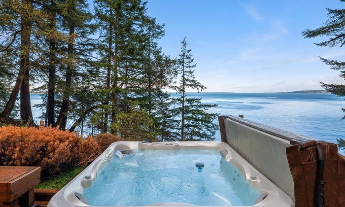 Aurora House provides guests with the perfect blend of coziness and spaciousness - an indoor and outdoor retreat set on a waterfront bluff with sprawling views off Orcas Island’s coveted north shore. Sit by the fire in the sizeable living room, with vaulted ceilings and floor-to-ceiling windows, watching the excitement of weather, boats, birds, marine mammals, and outer-island escapes. Or spend your days down the relaxing trail right next door where a private beach accessible only to neighborhood residents awaits – this beach is known by the lucky few to be one of the most beautiful and private beaches on the island.
