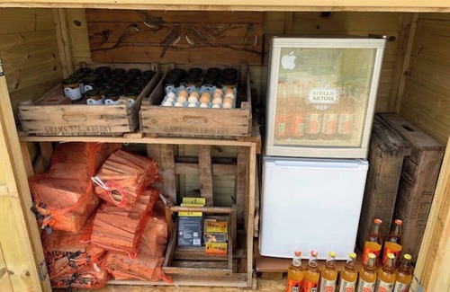 For outdoor relaxation, a secluded private spot by the stream awaits, complete with a fire pit and picnic table for guest use. On-site, indulge in our own cider available for purchase, and explore our tiny farm shop offering fresh eggs, local jams, pickles, and beer.