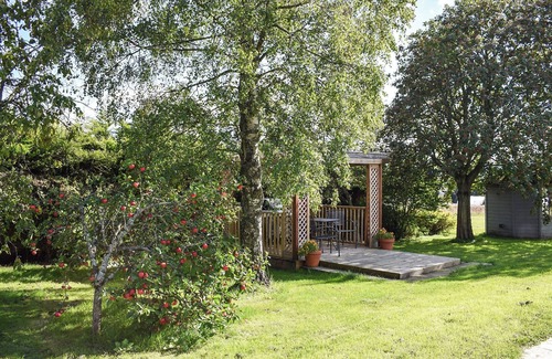 Orchard House offers a lovely bright open plan living room on the first floor has large, vaulted ceilings with crystal chandeliers making it feel very spacious. Glass doors open out on to a balcony with views over the surrounding countryside. Downstairs there is a large kitchen/dining area with a dining table that extends to seat six, the kitchen is fully equipped with integrated dishwasher. The French doors open out on to a private patio area where you share the garden areas with guests from the other two holiday homes, Fieldview, and The Old Barn. There is a large grassy area which is ideal for football, badminton, or cricket and a small summer house to sit in on a cool day and shared barbecue for the warmer weather.