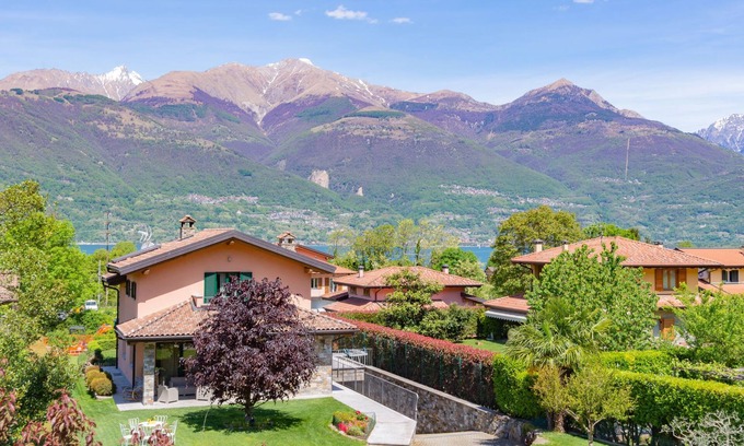 Modern single-family house "Orchidea". 1 km from the centre of Colico, 37 km from the centre of Lecco, 67 km from the centre of Como, in the residential district, 600 m from the lake. Private: property 325 m2, well-kept garden with lawn and trees. Stepped path (8 steps) to the house. Parking (for 2 cars) at the house. Supermarket 1 km, bus stop 1 km, railway station "Colico" 1 km, pebble beach 600 m, grass beach "'L'Ontano'" 1.5 km. Surf school 2 km.