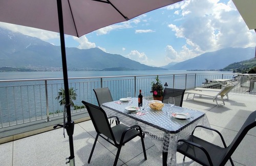 "Orchidea (GLA126)", 3-room apartment 70 m2 on 1st floor. Modern and tasteful furnishings: living/dining room with dining table and satellite TV. Exit to the terrace. 1 room with 1 french bed (160 cm). Exit to the terrace. 1 room with 2 beds. Exit to the terrace. Open kitchen (oven, dishwasher, 4 induction hot plates, toaster, kettle, microwave, freezer, electric coffee machine). Shower/WC. Gas heating, air-conditioning. Terrace. Terrace furniture, deck chairs (2). Marvellous view of the lake, the mountains and Monte Legnone (2609 m). Facilities: washing machine. Internet (WiFi, free). Parking at 30 m. Please note: non-smokers only. Maximum 1 pet/ dog allowed. No lift. IT013107C2UIU3UJNO