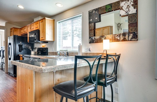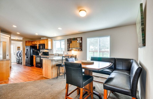 The hustle of the city becomes a distant memory here at this 2-bed, 2-bath Tygh Valley vacation rental! The cozy cabin hideaway backs up to Pine Hollow Reservoir, making it a sweet spot for fishing and kayaking. Bring your water toys to take advantage of the shared dock, venture further to the hiking trails at Mt. Hood National Forest, or have some rip-roaring fun when you go whitewater rafting on the Deschutes River. At sunset, return for dinner al fresco and s'mores by the fire pit.
